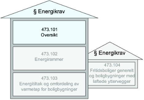 Energikravene til de ulike bygningstypene er behandlet mer detaljert i Byggdetaljer 473.102, 473.103 og 473.104.