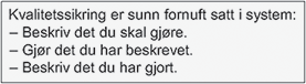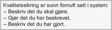 Hensikten med kvalitetssikring er å forebygge feil, oppdage feil og rette feil underveis. Et velfungerende kvalitetssystem er viktig for å unngå unødige endringsarbeider og reklamasjoner, og dermed viktig for god økonomi i bedriften.