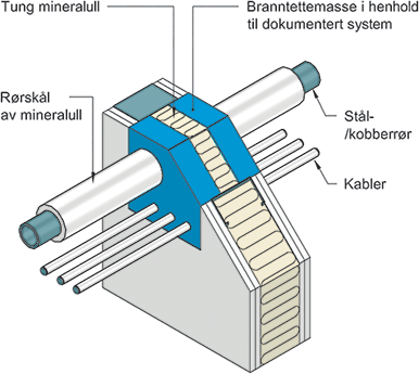 Det må være tett mellom brannskillende bygningsdel og kanaler, rør eller kabler som føres gjennom den. Kanaler og rør må i mange tilfeller isoleres for å sikre mot brannspredning som følge av varmeledning i rør eller kanal.