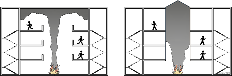 løsninger for å hindre brann- og røykspredning via det overbygde arealet