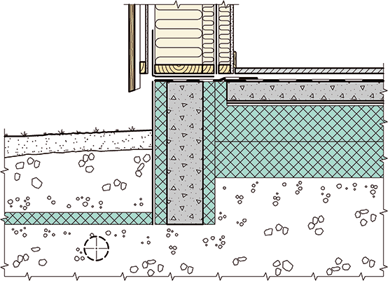 Dimensjonering av varmeisolasjon og frostsikring av golv på grunnen med ringmur for oppvarmede bygninger er behandlet i Byggdetaljer 521.112 Golv på grunnen med ringmur. Varmeisolering, frostsikring og beregning av varmetap. Byggdetaljer 520.706 Sikring mot radon ved nybygging viser hvilke hensyn man må ta for å unngå radon fra grunnen, se også pkt. 55. Vegger mot terreng er behandlet i Byggdetaljer 523.111 Yttervegger mot terreng. Varmeisolering og tetting.