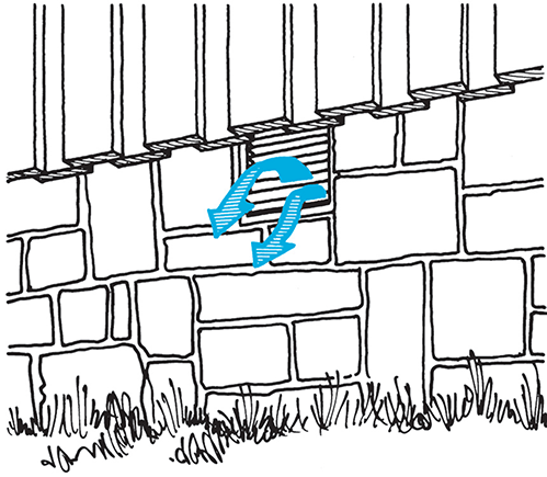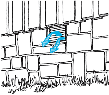 Samtidig må det sørges for at fuktighet transporteres bort ved tilstrekkelig ventilasjon av kryperommet. Fuktbeskyttelse og ventilasjon behandles nærmere i pkt. 22 og pkt. 23.
