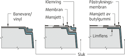 Det skal følge en monteringsanvisning med hvert enkelt sluk. Det må bare benyttes membraner som er tilpasset den aktuelle sluktypen.