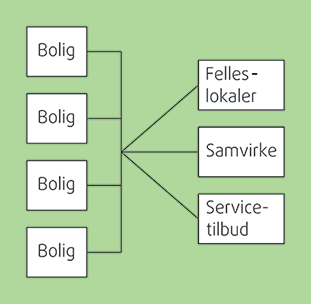 Dette bladet gir en oversikt over ulike løsninger og driftsmodeller for boliger med fellesarealer, samvirke og servicetilbud i nær tilknytning til boligen. Bladet beskriver:
