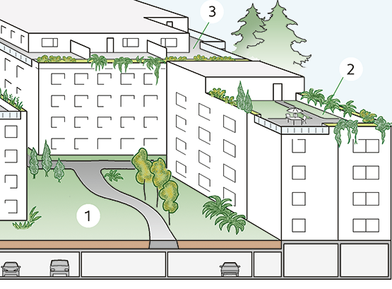 Denne anvisningen behandler grøntanlegg og beplantning som plen og buskvekster, mindre trær og gangarealer på terrasser med bærende betongdekker. Anvisningen viser først og fremst oppbygning av sjiktene over bærekonstruksjonen, det vil si isolasjons- og tettesjikt, beskyttelsessjikt, drenssjikt, dyrkingsmedium, samt beplantning og vanningsanlegg.