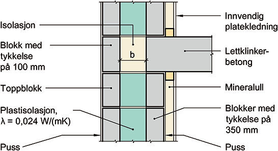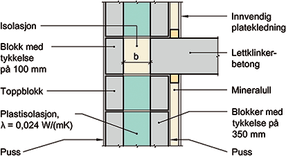 Blokktykkelse i veggen er på 350 mm