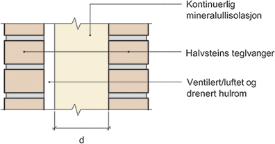 Denne anvisningen inneholder U-verdier for skallmurvegger over terreng, hvor veggens vanger er av tegl, se fig. 01.