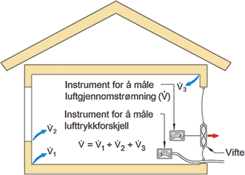 Luftmengden (V˙) er like stor som luftmengden i alle lekkasjepunktene V˙1 til V˙3