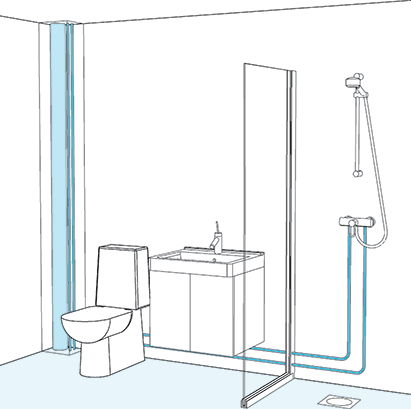 Dette bladet omhandler overordnede forhold som må vurderes når man bygger bad og andre våtrom i boliger. Bad i institusjoner og hoteller og våtrom med tilsvarende vannpåkjenning omfattes også av bladet. Videre beskriver bladet prinsippene for vann- og fuktsikring samt kritiske detaljer. Figur 0 viser eksempel på innredning og rørføring i baderom.