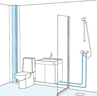 Ombygging av baderom i eksisterende bygninger er behandlet i Byggforvaltning 727.826.