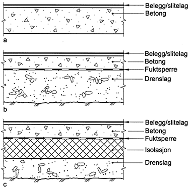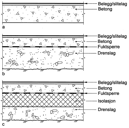 b. Golv på grunnen uten isolasjon med fuktsperre