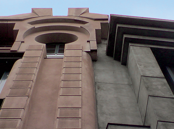 Fasadeelementer støpt mot matriseformer og dels profilert. Fargesetting med lys, gjennomfarget betong og granittilslag. Christiania Glasmagasin. Tilbygg 1990. Arkitekt: Platou Arkitekter AS. Foto: SINTEF Byggforsk