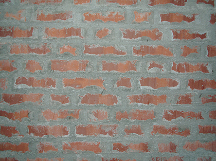 Teglmurverk med fuger der overskuddsmørtel fra oppmuringen er dratt ut på steinene