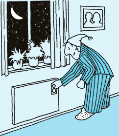 • stille inn ovnene til en lavere temperatur (sparetemperatur) i tidsrom da rommene ikke brukes (f.eks. arbeidstid/natt)
