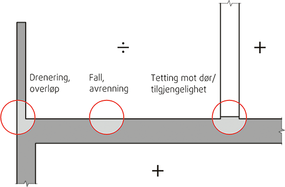 Typiske forhold som kan føre til skader på terrasser over oppvarmet rom