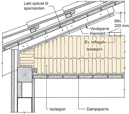 525.107 Skrå tretak med oppvarmet rom i deler av loftet