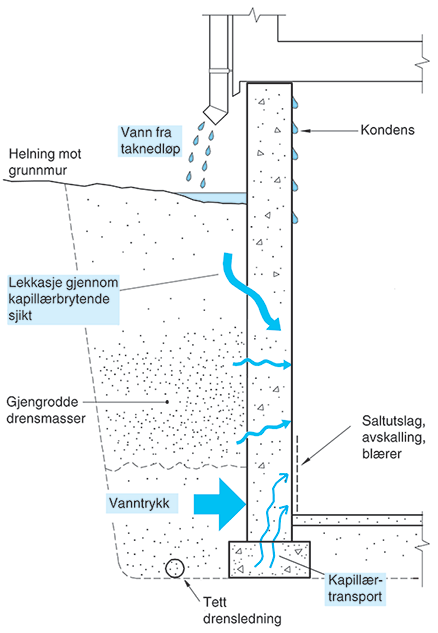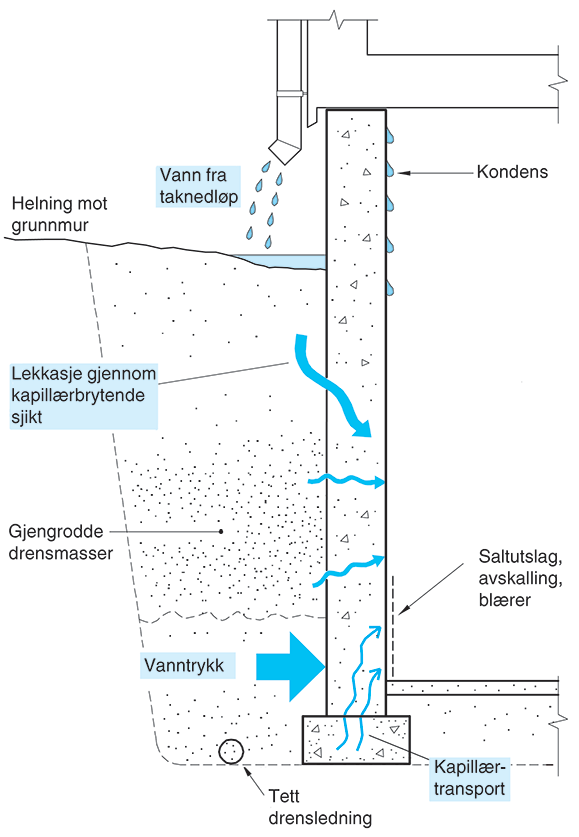Dette bladet behandler skader knyttet til fukt i kjellere og beskriver hvordan de kan kartlegges og utbedres. Vannskader på grunn av flom, tilbakeslag i avløp, rørbrudd og lekkasjer fra installasjoner er behandlet i Byggforvaltning 700.115.