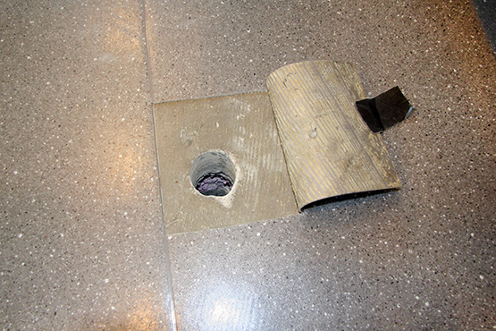 Figuren viser prøveuttak (kjerneboring) for måling av fukttilstand i betongen. Foto: SINTEF Byggforsk