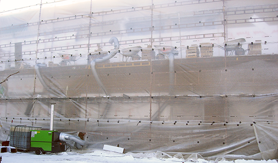 Arbeidsplass tilrettelagt for vintermuring av teglforblending