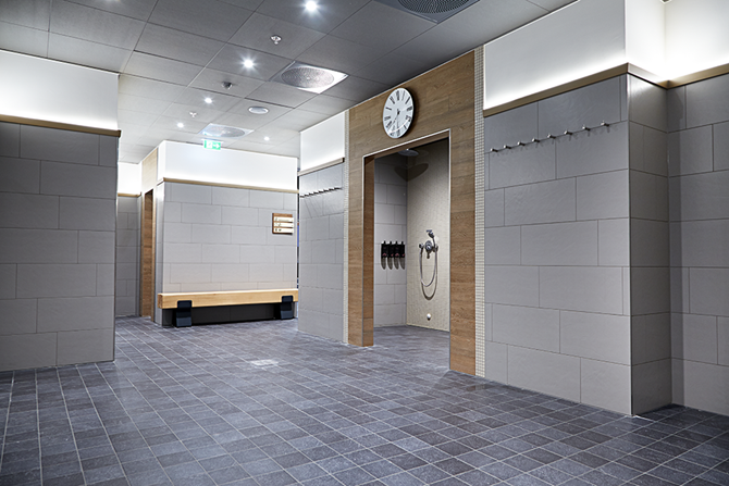 Fliskledning gir rom ulikt preg via farger, størrelser og format på flisene. Foto: Fagflis og Jan Ove Rust