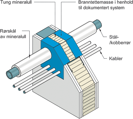 Det må være tett mellom brannskillende bygningsdel og kanaler, rør eller kabler som føres gjennom den. Kanaler og rør må i mange tilfeller isoleres for å sikre mot brannspredning som følge av varmeledning i rør eller kanal.