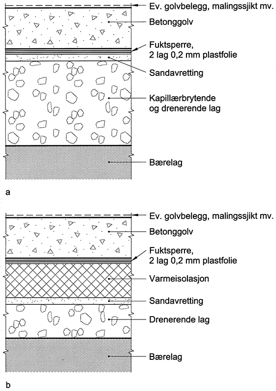 521.111 Golv på grunnen med ringmur for oppvarmede bygninger. Utførelse