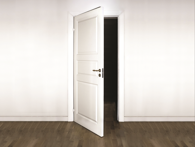 Denne anvisningen behandler innsetting av vanlige sidehengslede innerdører med trekarm. Anvisningen viser feste av karm, utforming av fuger og belistning.