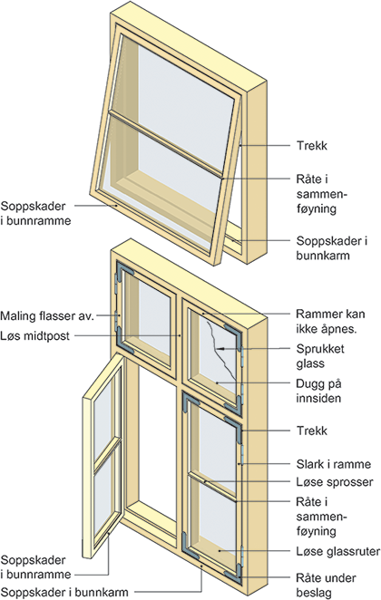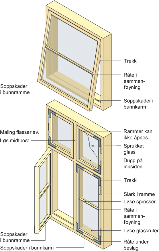 Typiske skadesteder på vinduer