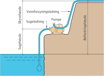Statisk høyde: høydeforskjellen mellom pumpa og laveste vannspeil i vannkilden