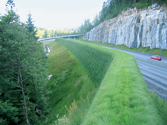 Armert voll anlagt for å dempe trafikkstøy fra vei. Foto: Statens vegvesen