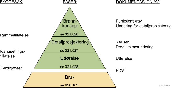 Fasene som krever dokumentasjon av brannsikkerhet, er nærmere beskrevet i følgende anvisninger: