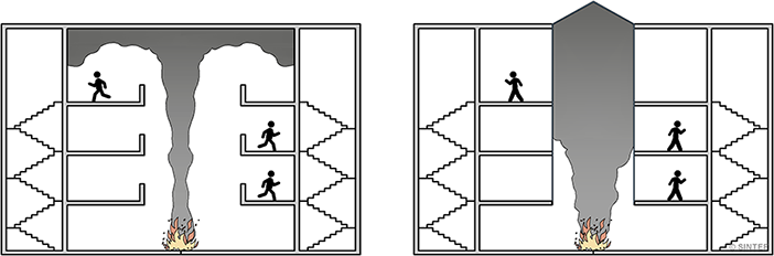 utforming av overbygde gårder og gater for å sikre rømning