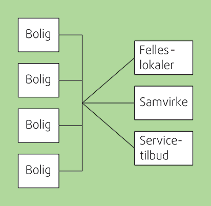 Dette bladet gir en oversikt over ulike løsninger og driftsmodeller for boliger med fellesarealer, samvirke og servicetilbud i nær tilknytning til boligen. Bladet beskriver: