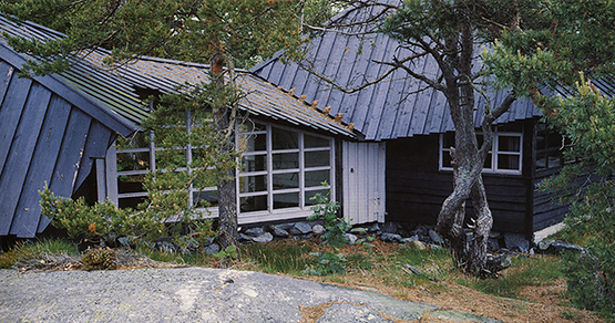 Norges mest publiserte hytte, oppført i 1949 i havgapet utenfor Portør, Kragerø kommune. Filosofien bak den var at byggverket skulle innordne seg naturen og tomta; bygningen skulle bli en del av terrenget og helst gå i ett med det. Arkitekt: Knut Knutsen [424]
