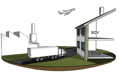 Nøyaktig beregning av innendørs støynivå og lydisolasjon i yttervegger med dører, vinduer og ventiler er beskrevet i Byggdetaljer 421.425 Isolering mot utendørs støy. Beregningsmetode.