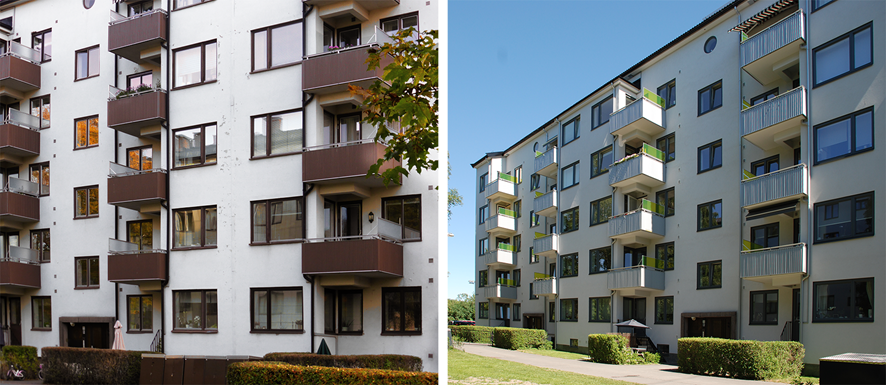 Voldsløkka Borettslag før og etter oppgradering. Foto: OBOS Prosjekt AS og SINTEF Byggforsk