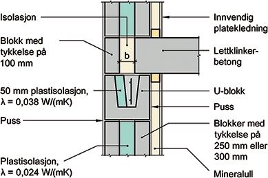 Blokktykkelse i veggen er på 250 eller 300 mm.