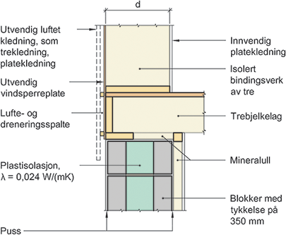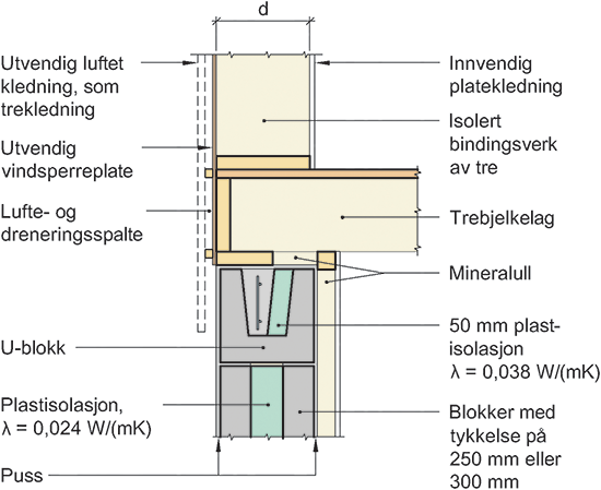 Blokktykkelse i veggen er på 250 eller 300 mm.