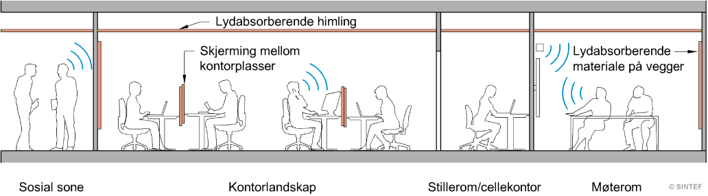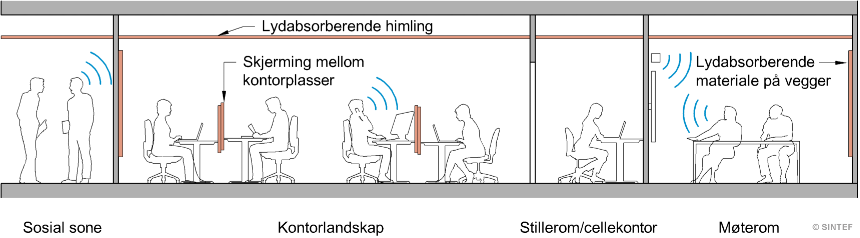 Denne anvisningen inneholder krav, anbefalinger og løsninger for å oppnå gode lydforhold i kontorlokaler.