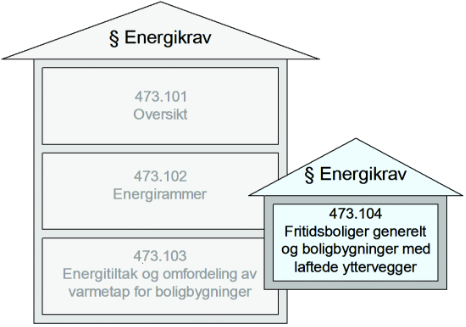 Fritidsboliger over 150 m2 oppvarmet BRA uten laftede yttervegger behandles som ordinære boligbygninger. En oversikt over samtlige energikrav til bygninger er gitt i Byggdetaljer 473.101.