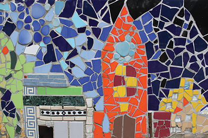 Livet på asylmottak handler også om å samle bitene fra en tidligere tilværelse og sette dem sammen til en ny. Utsnitt av mosaikk utført av beboere på et asylmottak. Foto: SINTEF Byggforsk