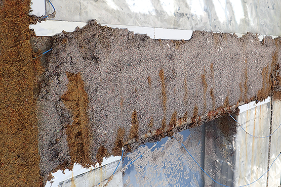 Behandlingsfelt med etablert armeringskontinuitet og påsprøytet fibermasse. Foto: Stærk & Co AS