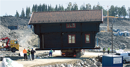Flytting av Peisestua i Holmenkollen. Foto: SINTEF Byggforsk