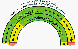 Byggeskikksirkelen er et hjelpemiddel til bruk ved prosjektering av tiltak og håndheving av pbl §74.2. Den gir en metode for systematisk vurdering og mer konsekvent bruk av §74.2 fra sak til sak. Byggeskikksirkelen kan være grunnlag for drøfting av alternativer i forbindelse med forhåndskonferansen og kan legges til grunn ved utarbeiding av kommunale veiledere i estetikk.
